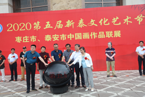 7月18日,2020第五届新泰文化艺术节——枣庄、泰安市中国画作品联展在新泰文化艺术城隆重开幕。本次展览是由枣庄市文联、枣庄市美术家协会、泰安市文联、泰安市美术家协会、中共新泰市委宣传部、新泰市文化和旅游局、新泰市文联、青云街道办事处主办,山东泽华置业集团有限公司、山东艺云文化发展有限公司、新泰文化艺术城承办;新泰市文化馆、新泰市美术家协会、新泰市文化产业协会、新泰文创街协办。山东省美协副主席、枣庄市文联副主席、枣庄市美协主席张星斗同志,泰安市文联党组副书记、二级调研员周鹏同志,山东省美协副主席、泰安市美协主席孙成刚同志,新泰市政协副主席薛宝良同志,泰安市文联工会主席、泰安市民间文艺家协会主席刘言良同志,泰山区文联主席、泰安市美协常务副主席包小义同志,枣庄市美协副主席仇顺廷同志,新泰市委宣传部副部长张燕同志,青云街道党工委副书记、办事处主任马桂前同志,新泰市历史文化研究院副院长王建林同志,新泰市美术家协会主席陈广秀同志,山东泽华集团党委书记田清坤同志出席了开幕仪式。开幕式由新泰文联社科联党组书记、主席徐勤启同志主持。