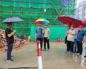7月5日至7月6日,中房建工安全科、设备科对公司所有在建工程开展安全大检查。结合安全生产月及建管中心第三方辅助检查组复查提出的问题分别对施工现场的安全文明施工、基坑工程、脚手架、“三宝、四口”及临边防护、模板支架、高处作业电动吊篮、施工用电、施工机具、塔机、扬尘治理、安全资料、高温防暑、雨季汛期措施等方面进行全面检查。