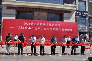 8月23日上午10时,2022第七届新泰文化艺术节——“黄河泰山”滨州、泰安中国画作品邀请展开幕式在新泰文化城前广场隆重举行。