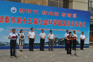 7月12日,新泰市第十五届社会科学普及周启动仪式在文化城隆重开幕。本次活动是由泰安市社科联、中共新泰市委宣传部、新泰市社科联、青云街道办事处主办,山东泽华置业集团有限公司承办,山东艺云文化发展有限公司、新泰文化艺术城、新泰文创街协办。出席今天仪式的领导有:泰安市社科联党组副书记、副主席米清国同志;中共新泰市委常委、宣传部长李玲同志;泰安市社科联办公室主任梁国华同志;中共新泰市委宣传部常务副部长范清君同志;青云街道党工委书记吕熙伟同志;新泰市文联党组书记贠相宝同志;青云街道党工委委员、宣传委员张瓅铭同志;山东泽华集团董事长、总经理张新汶同志。新泰市文联社科联主席徐勤启同志主持了启动仪式。