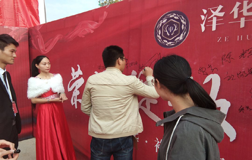 1020日早,距离开盘还有一个多小时,很多客户已经陆续到达,大家早早赶来,生怕错过自己心仪的房源,秋日的清晨微凉,也挡不住大家的热情,签名墙上密密麻麻的名字,现场涌动的人潮,充分印证了泽华·裕泰园的人气与魅力。